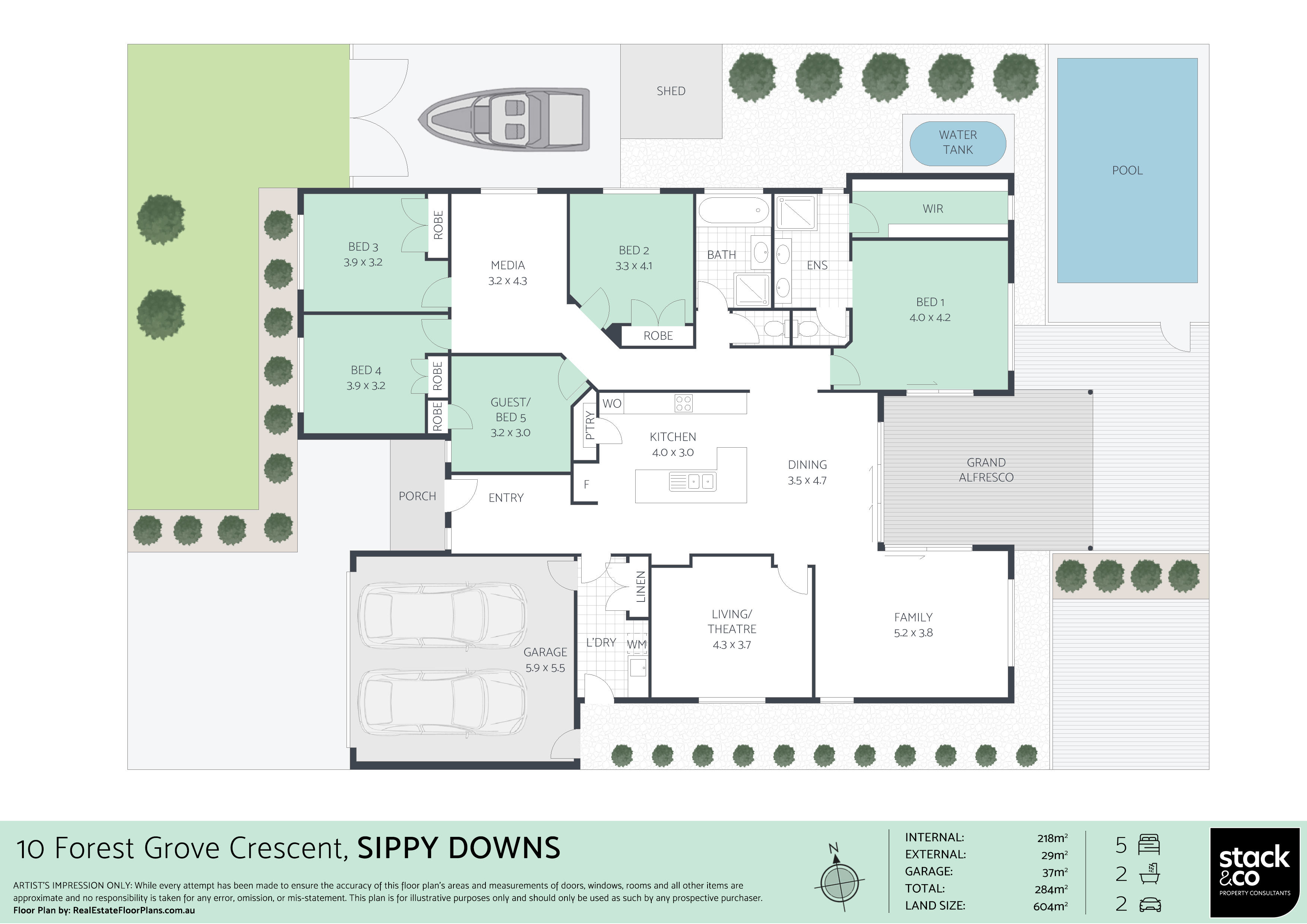 - Eco-friendly additions include a 5kW solar system and water tanks to service the pool and gardens.
