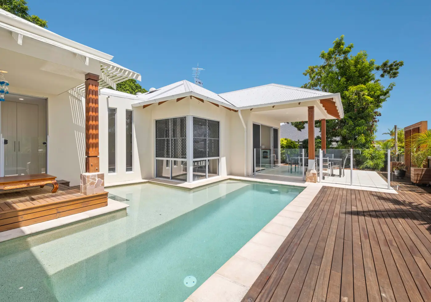 Step outside and you're in your own private resort. A sun-drenched poolside deck, timber cabana, and covered alfresco area create the ultimate setting for summer entertaining, cocktail nights, or quiet evenings surrounded by lush greenery.